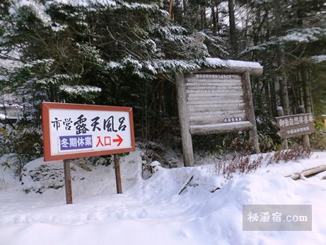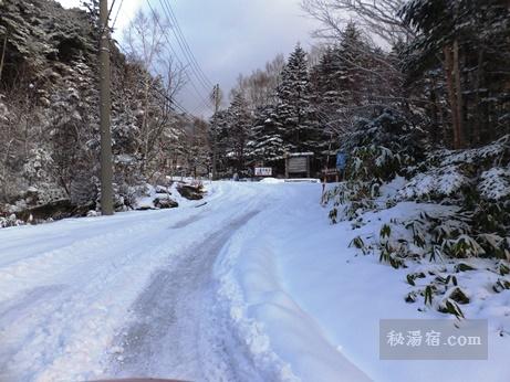 深い雪道を登って行くと、「旅館御岳」のすぐ裏手にあります。