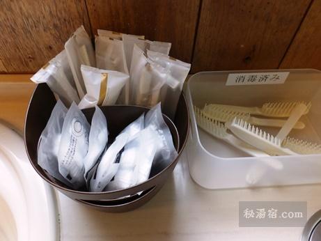 脱衣所には、カミソリ、ヘアブラシ、シャワーキャップが置いてありました。