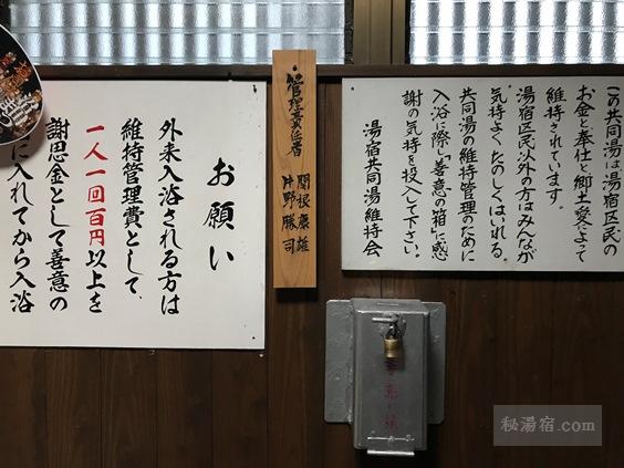 外来者(湯宿温泉宿泊者を含む)は午後4時から8時までに入浴完了して下さいと書いてあります。