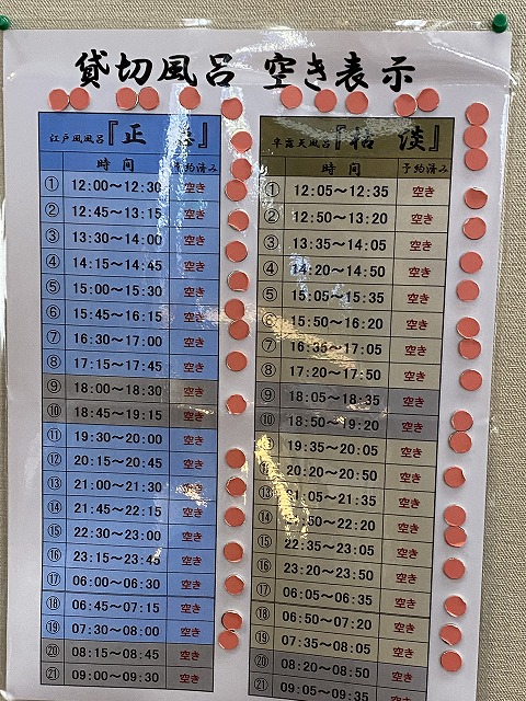 貸切風呂は現在、「正徳の湯」と「枯淡の湯」の2つだけ稼働しています。