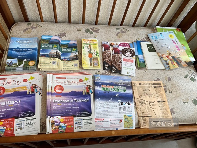 廊下のベビーベッドの上には弟子屈町のパンフレットがありました。