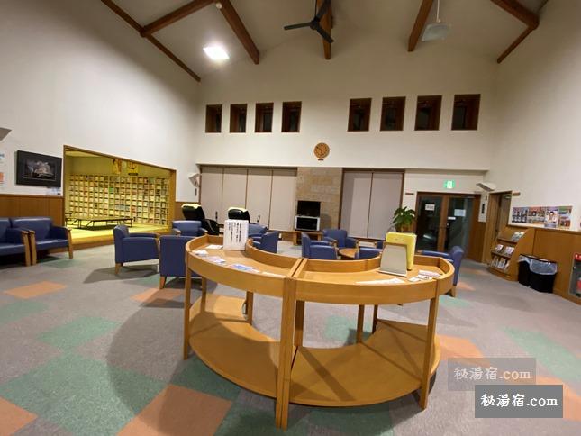 休憩所には大きな本棚、テレビ、マッサージチェアがあります。