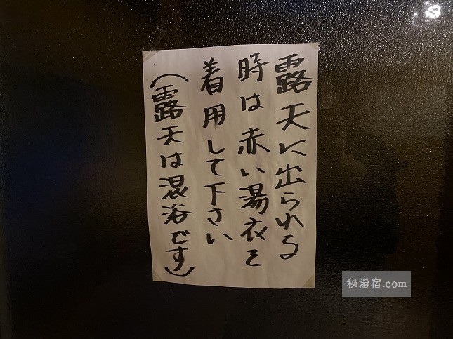 露天風呂は男女とも脱衣所にある布を巻いて入らなければなりません。