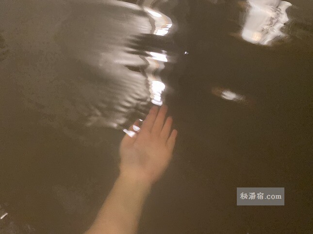 角があるせいか、お湯が滞留していて黄土色の湯花が沈殿していました。