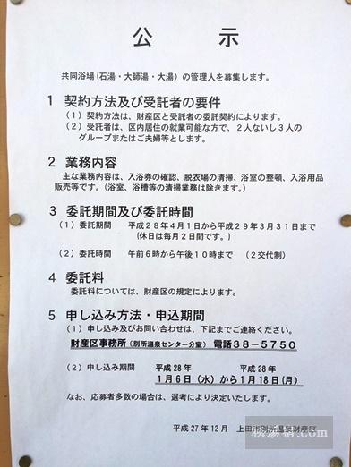 後日訪問したところ、町の掲示板で共同浴場の管理人を募集していました。