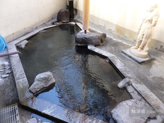 黒っぽい石造りのお風呂で5~6人サイズの大きさで、屋根なし、眺望なし。