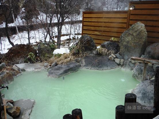 やや熱めで綺麗なエメラルドグリーンのお湯。