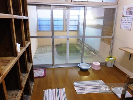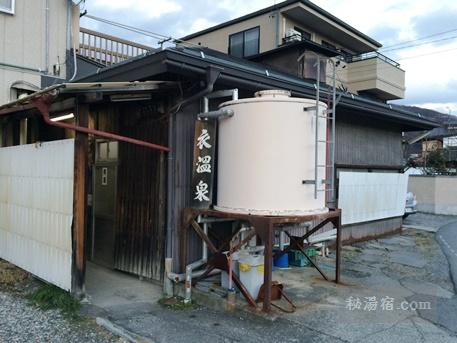 掘っ立て小屋のような湯小屋にアルミサッシが哀愁を感じさせます。