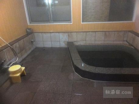 4畳半ほどの浴室には黒御影石の2~4人サイズの小さなお風呂が一つ。