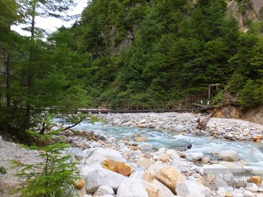 「晴嵐荘」からは20分くらいと近いですが、途中ロープで崖を下りたり、川の浅瀬を歩く場合もあります。水量が多い時にはかかとのないサンダルでは流されたり、滑ったりするので危険だと思います。