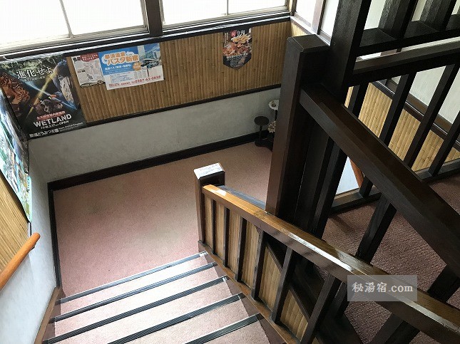 大浴場は玄関と同じ1階なのですが、厨房を通らせないためなのか、一度2階に上がってからまた階段を下がるという順路になっていました。