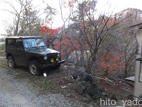 道沿いにはナンバープレートが外れた廃車のジープ。