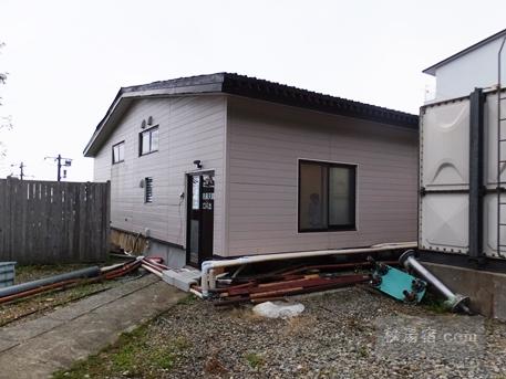細道を入ってすぐ左に「松川屋」があり、次の十字路を右へ曲がって5分ほどすると「復興御宿」の看板。
