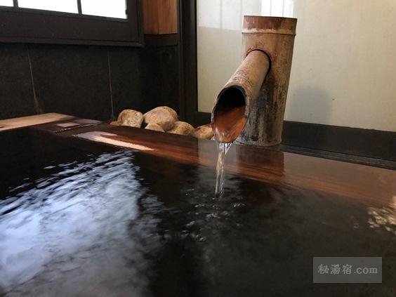 「岩井屋」の温泉は敷地内に自噴しており、「源泉長寿の湯」という湯船の底から湧いています。