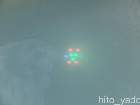 浴槽の中が虹色に光っていますが、ライトがいくつか埋め込んであります。