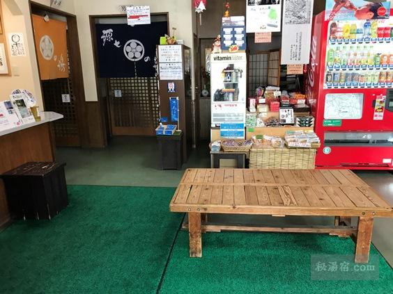 中に入ると左に受付と券売機、右に長ベンチの休憩スペースとドリンク、アイス等の自販機があります。