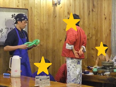 2015年訪問時には鯉のアラの餌付けはやっておらず、2017年5月現在も食事の際の餌づけは行っていませんでした。
