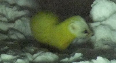 喫茶室の前の鳥の巣箱の中にまたテンが!