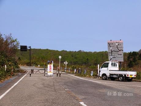 栗駒山荘を降りたところにある通行止の県道282号線。