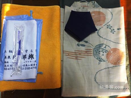 浴衣とタオルセット。タオルセットは籐籠に入れて持ち歩けます。