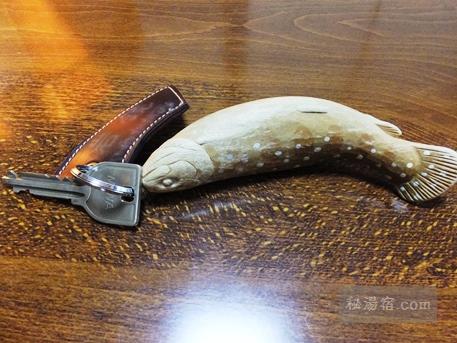 部屋の鍵には岩魚の木彫りのキーホルダー。