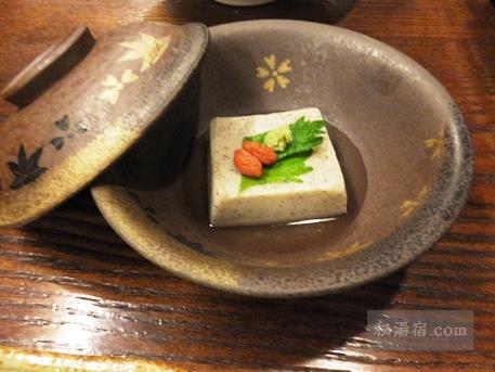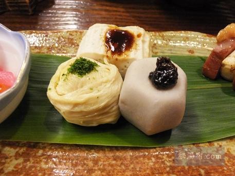 湯葉巻き、里芋、奥にあるのは味噌豆腐かな。