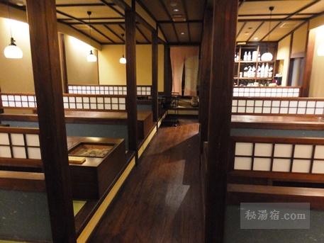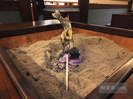 食事処は4人掛けの長いテーブルで、下は掘りごたつ式、通路側に囲炉裏がついていました。
