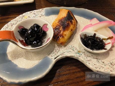 黒豆の煮物に鮭の粕漬け、佃煮昆布とかまぼこ