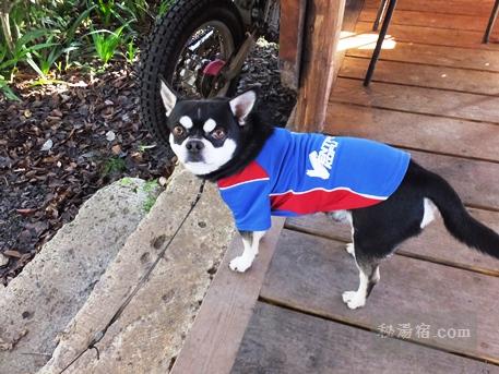 後ろの方で何か音がすると思ったら、宿の看板犬でした。