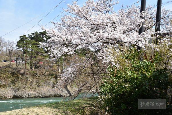 熱めの湯の方がお湯の良さを実感できるのですが、せっかく桜が咲いていたので長湯するためにぬる目にしました。