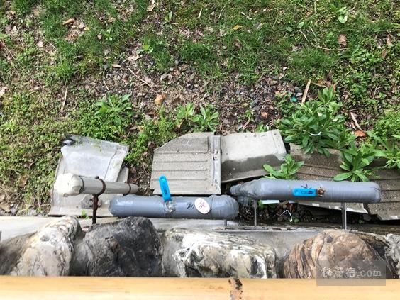 露天風呂には加水用のホースがないなと思ったら、フェンスの下にパイプがあり、ここで調節できました。