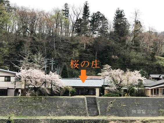 対岸から見える両脇に桜の木に挟まれているのが今回宿泊した「桜の庄」の離れ。