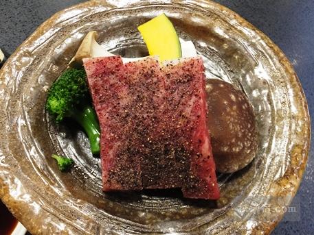 強肴:黒毛和牛陶板焼(野菜はかぼちゃ、エリンギ、ブロッコリー、しいたけ)