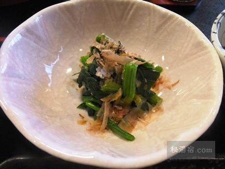 なめこと菊の煮びたし(中央上)、むかご石垣(中央手前)