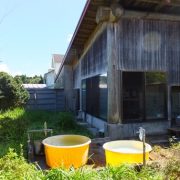 湯小屋の中に入ると簡易な脱衣スペースがあります。