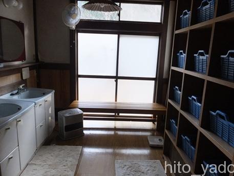 脱衣所は棚と籠、洗面台、ヘルスメーター、ヒーターがありました。