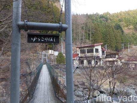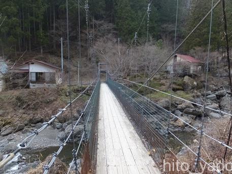 宿の脇の小道を歩いて行くと大きな吊り橋があります。